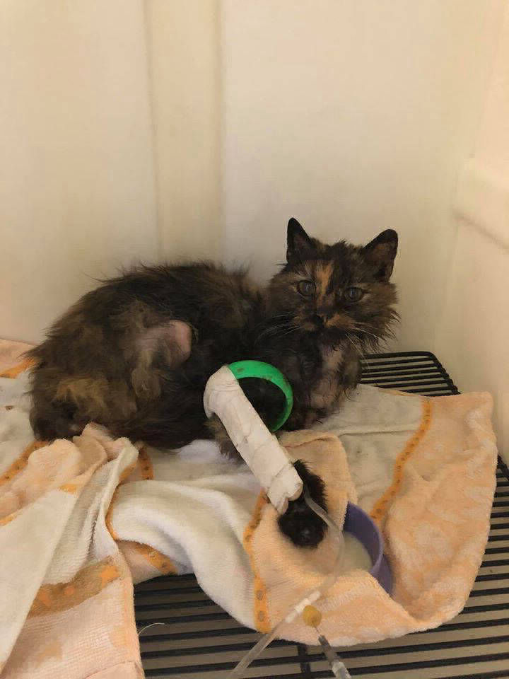 En ARAF, llegó un aviso de los vecinos del Barrio Monte Gallinero, sobre el mal estado de una gata.