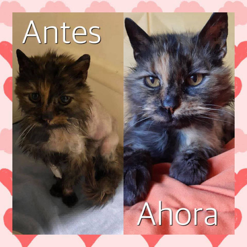 Mientras tanto, la gatita, seguía internada, Esperanza como la bautizamos en ARAF, comenzó a recuperarse más rápido de lo esperado, era una luchadora, iba mejorando a pasos agigantados, ya comía alimento balanceado por sus propios medios, tomaba agua normal, y su ánimo mejoró muchísimo!!