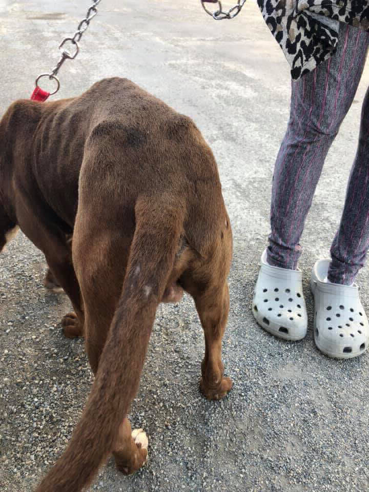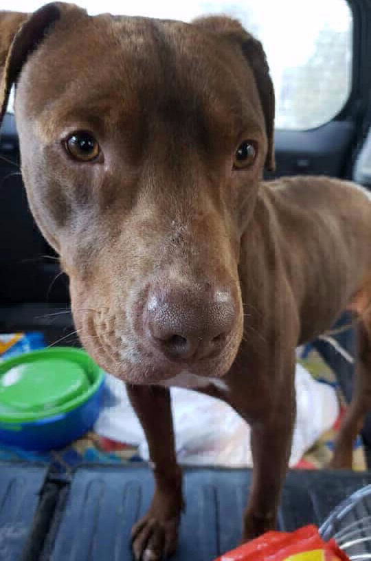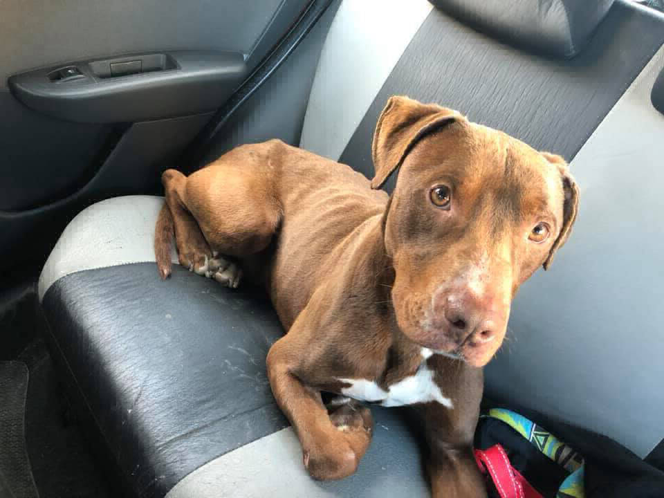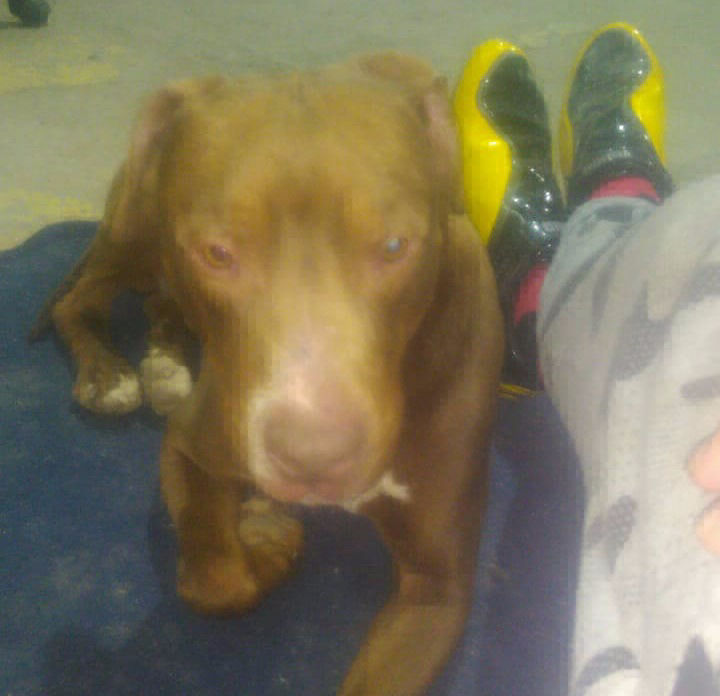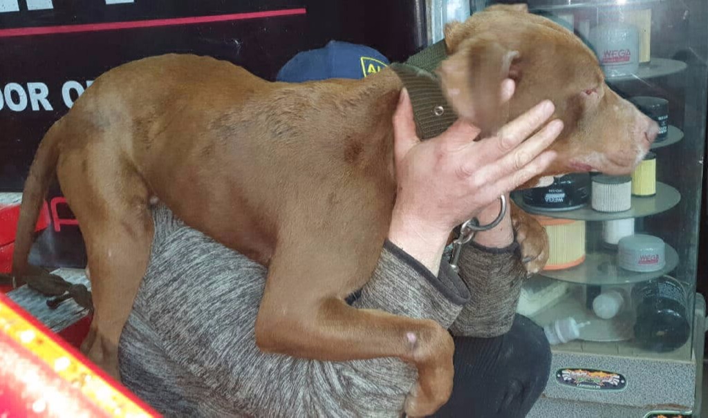 Vecinos dan aviso a ARAF de un perro pitbull que estaba muy flaco deambulando por las calles.