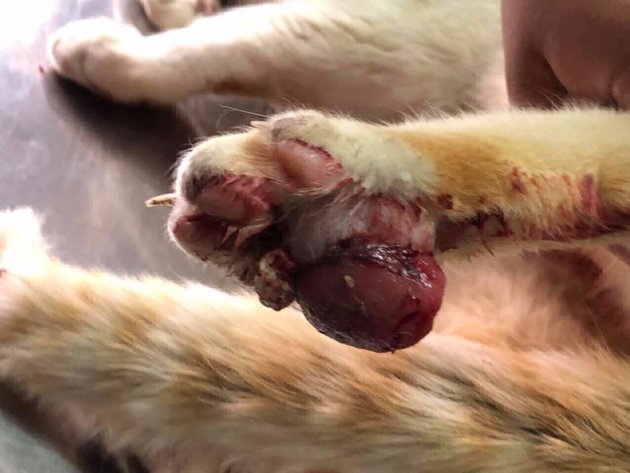 ARAF se acercó al lugar, al dialogar con la vecina, nos comentó que el gato llevaba varios días en su patio, con la pata lastimada e infectada.