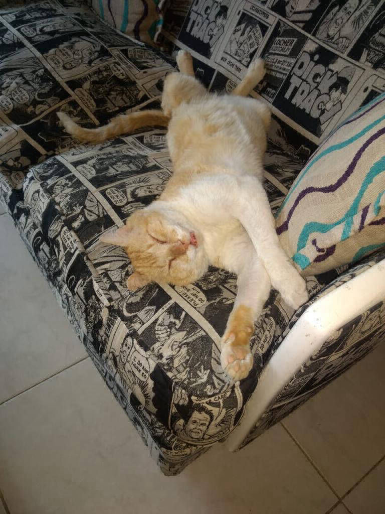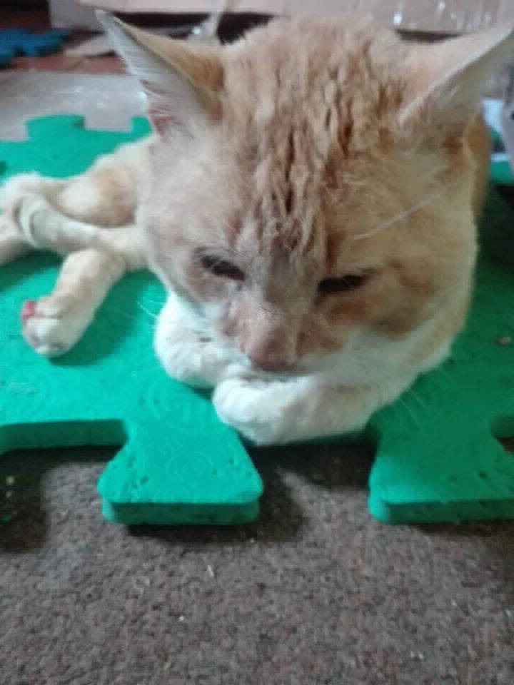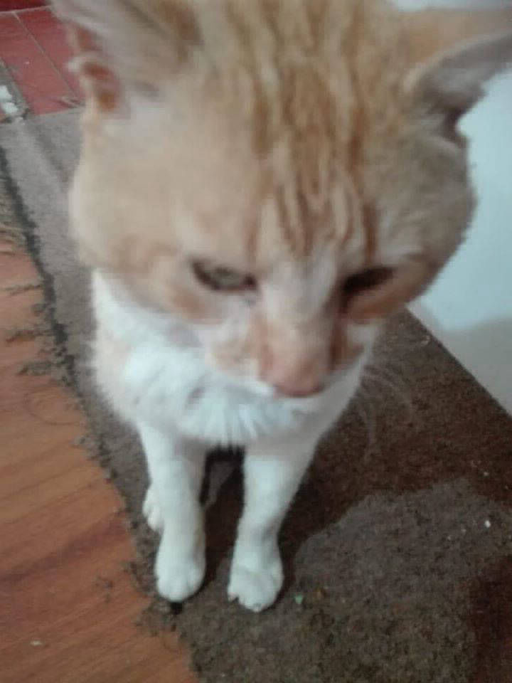 Su estado general era muy malo, se encontraba totalmente descuidado, con varias cicatrices y muy delgado, era un gato muy sufrido y pedía contención todo el tiempo.