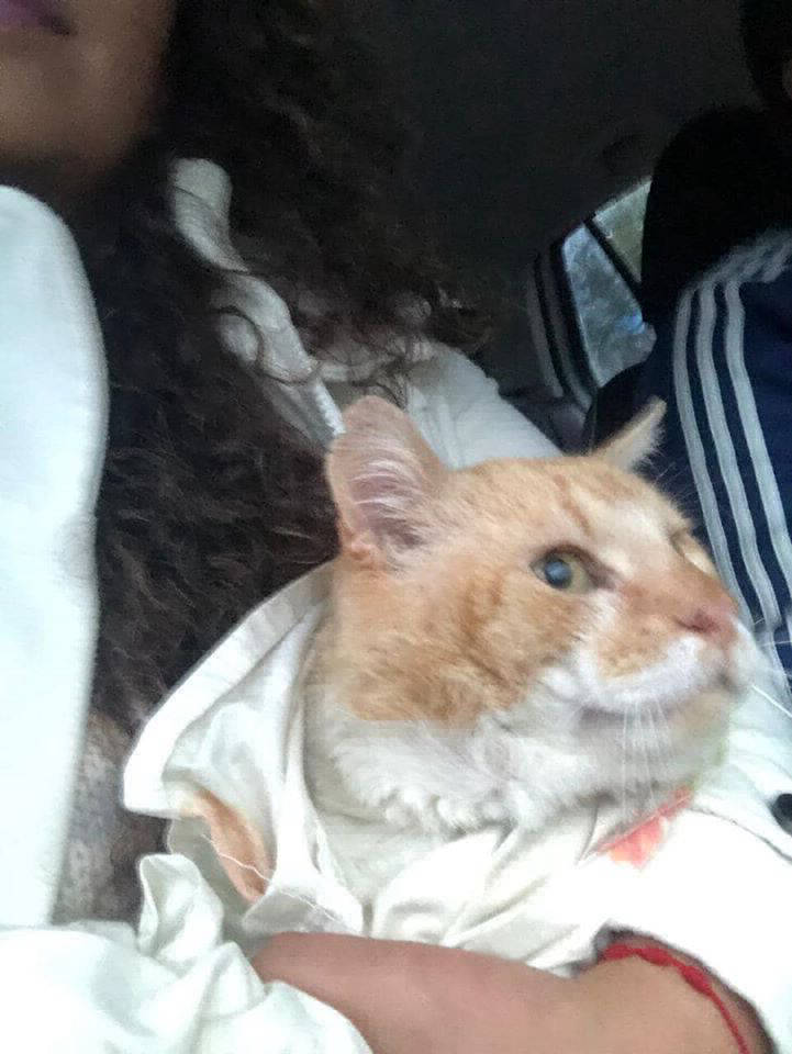 Una vecina del Barrio Malvinas dio aviso en ARAF, de un gato en situación de calle lastimado.