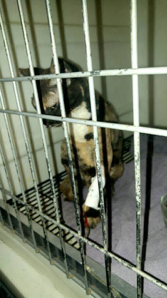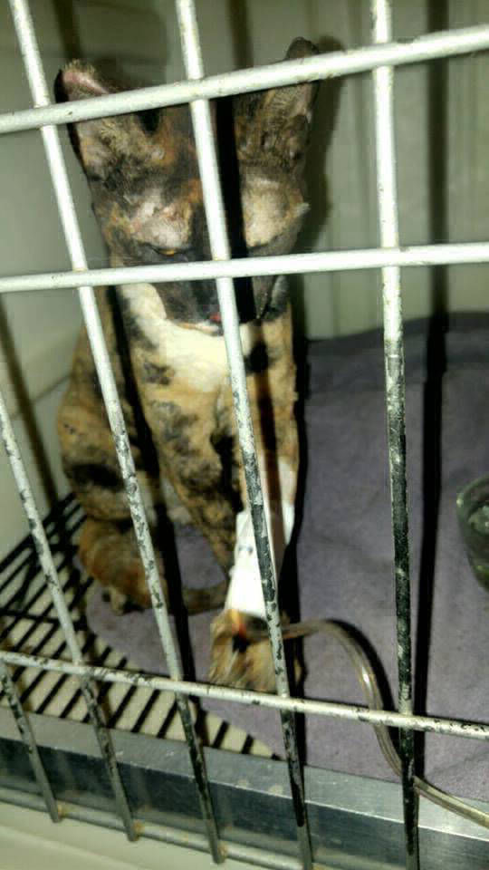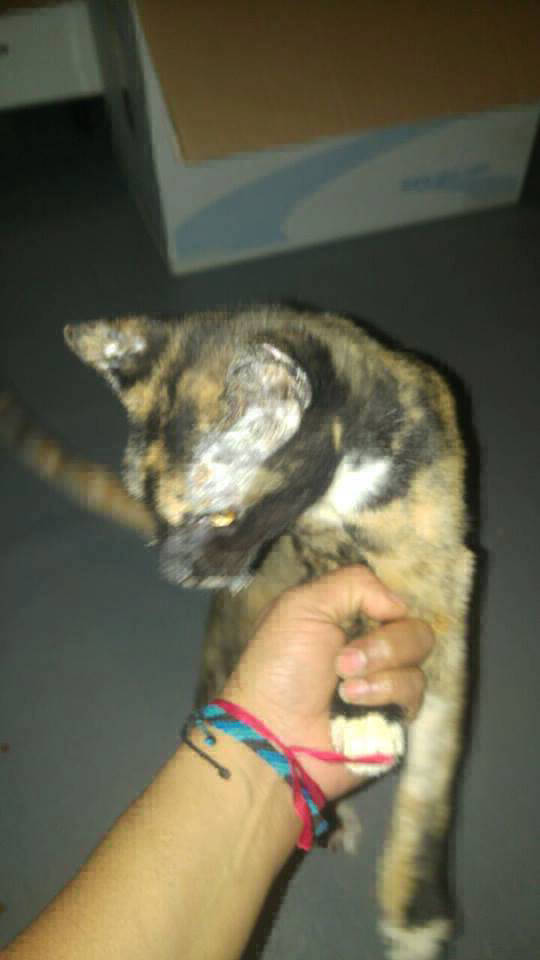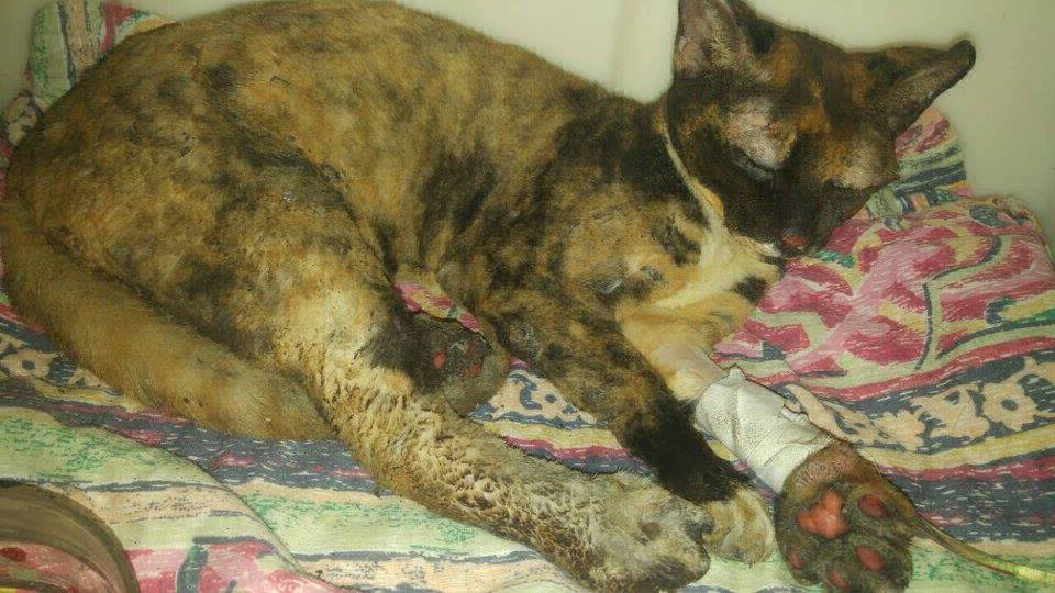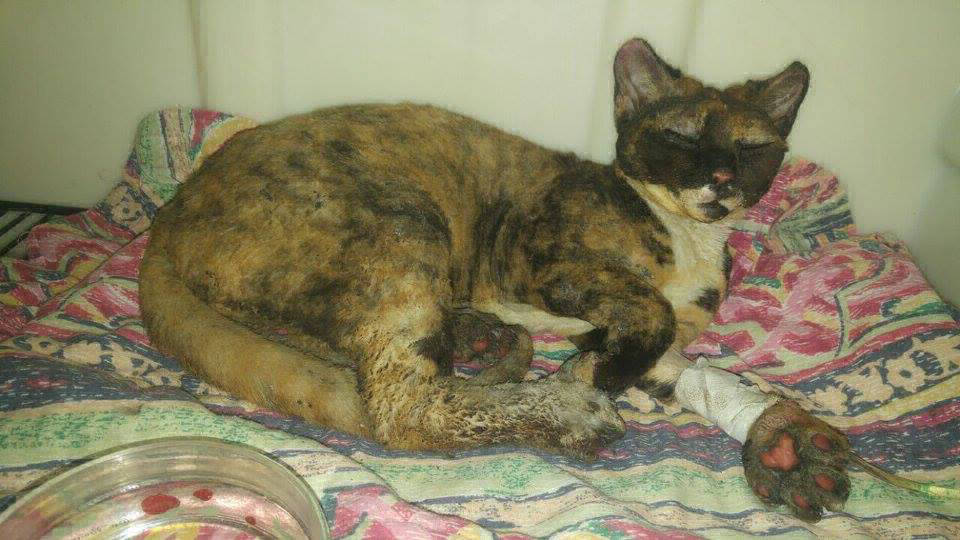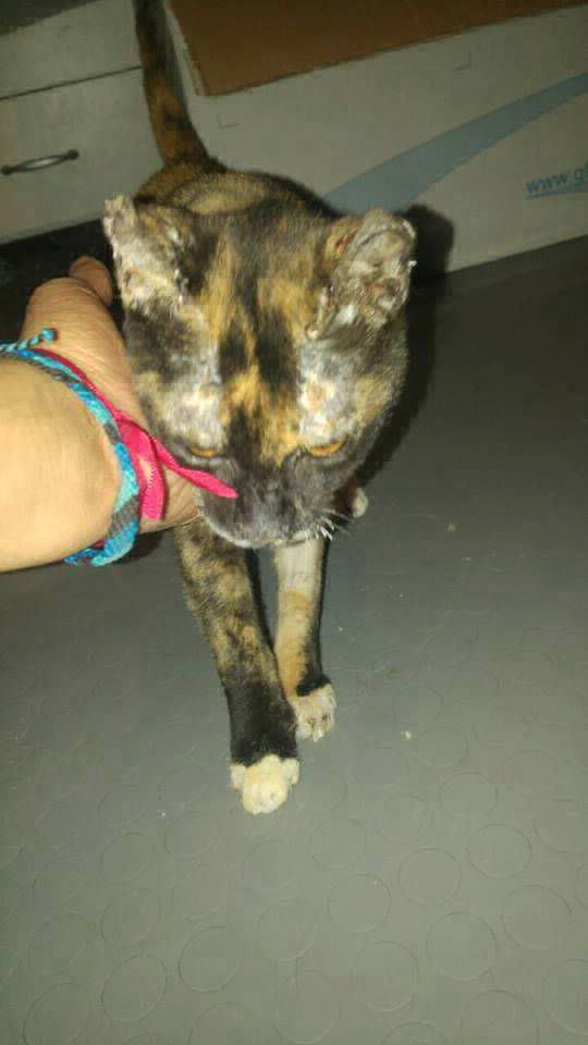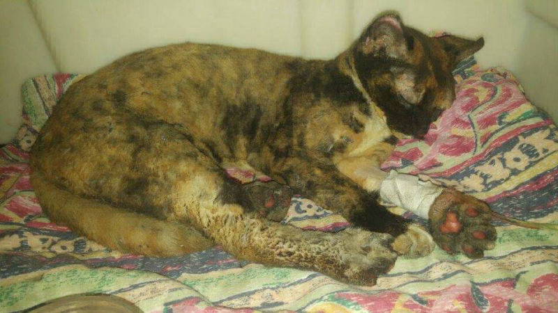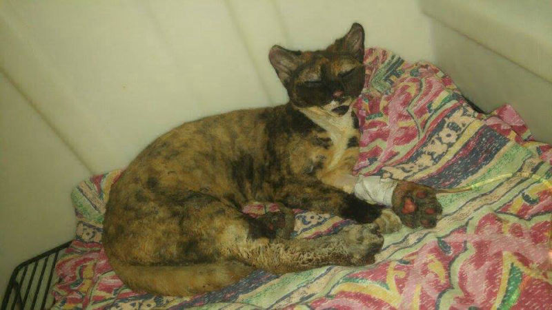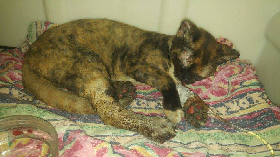 Sus pelitos se quemaron, y varias zonas del cuerpito habían sufrido quemaduras, sus almohadillas también estaban lesionadas.