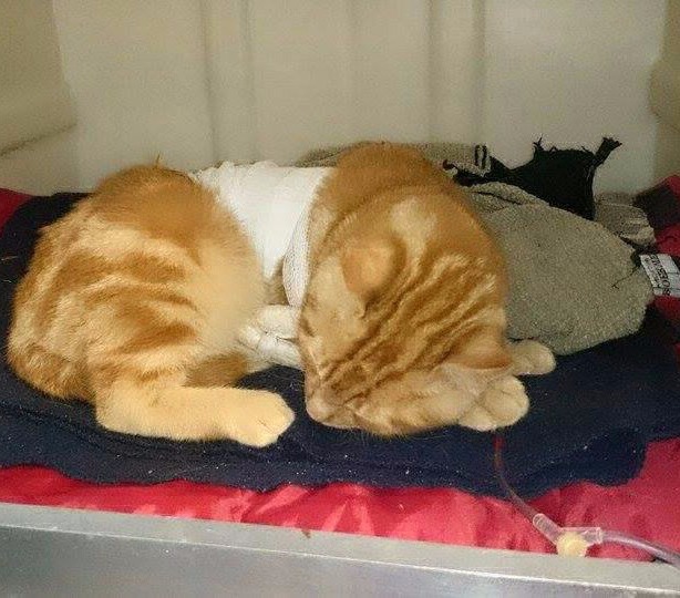 ARAF lo lleva a la veterinaria para que lo asistan, quedando internado con suero y en cuidados intensivos.