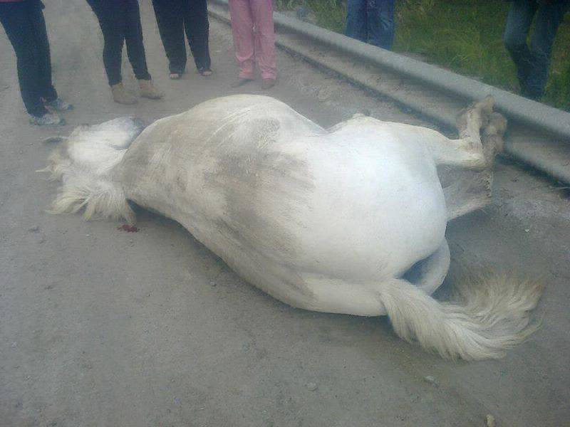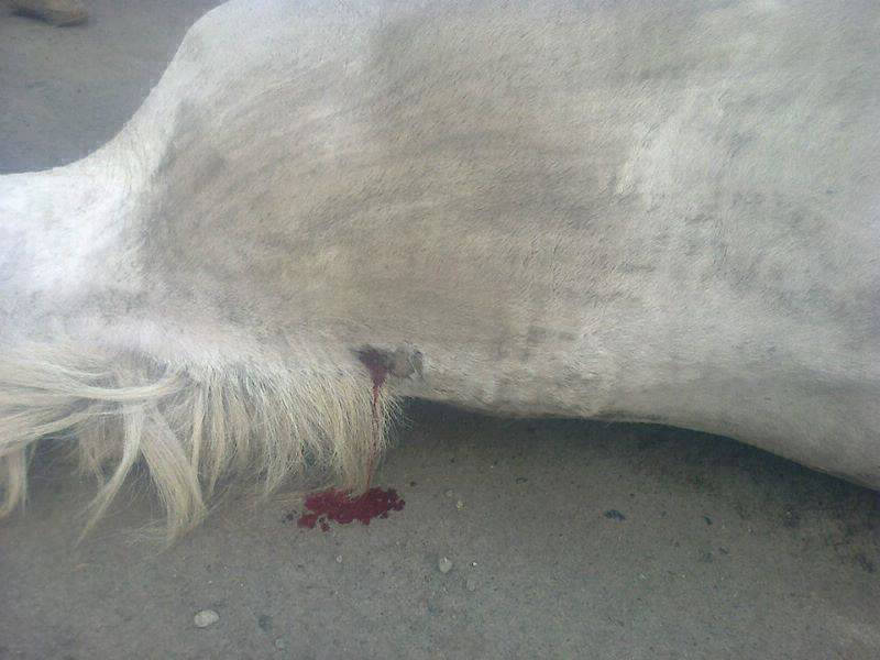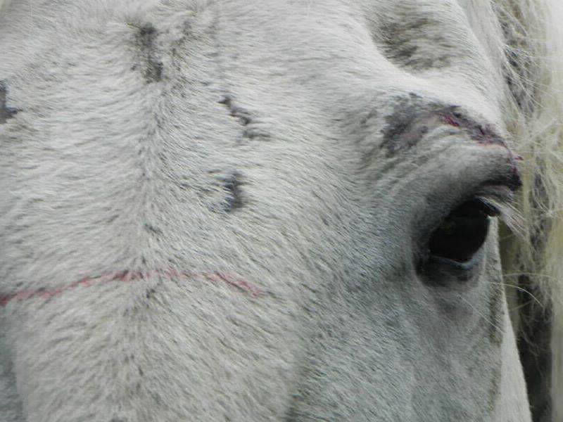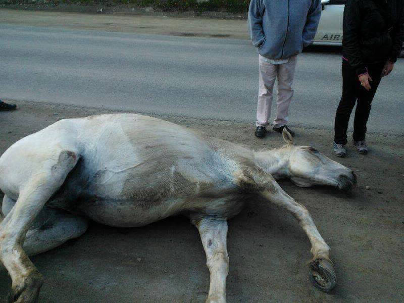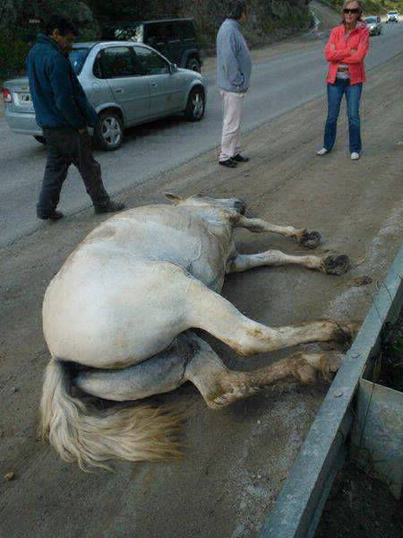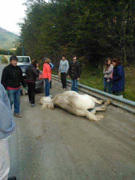 ARAF fue avisado sobre un caballo que había sido arrastrado salvajemente atado de una soga a un vehículo sobre el pavimento: el dueño lo llevaba demasiado rápido, el caballo perdió el equilibrio y cayó, siendo arrastrado varios metros y provocándole heridas de diversa índole: principalmente raspaduras y quemaduras en todo su cuerpo.