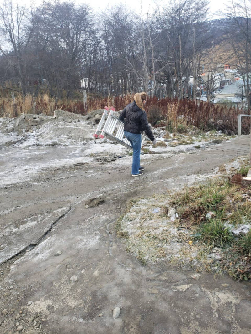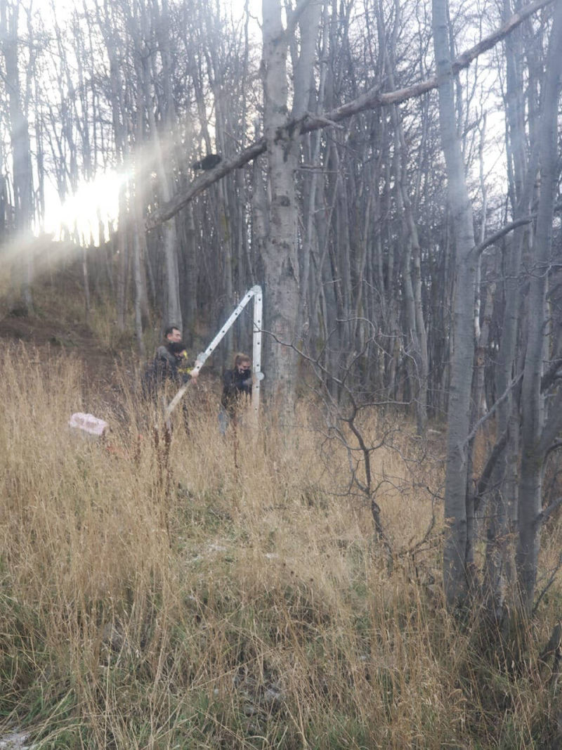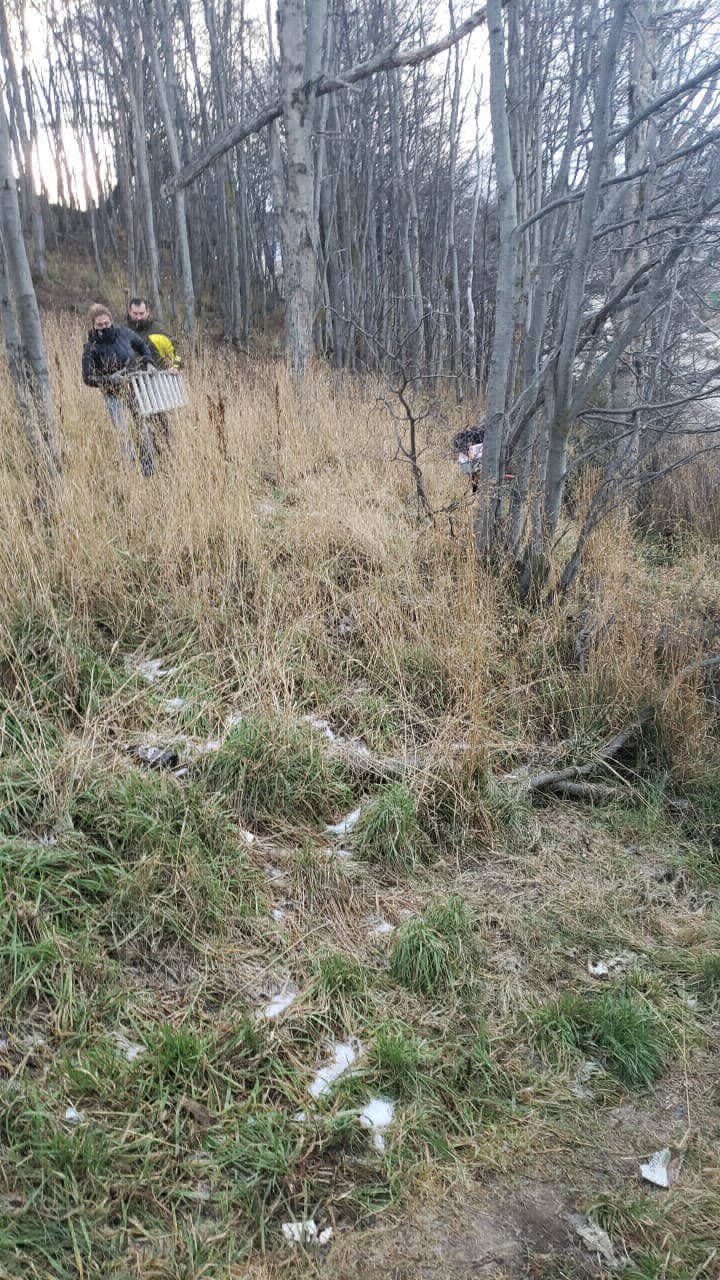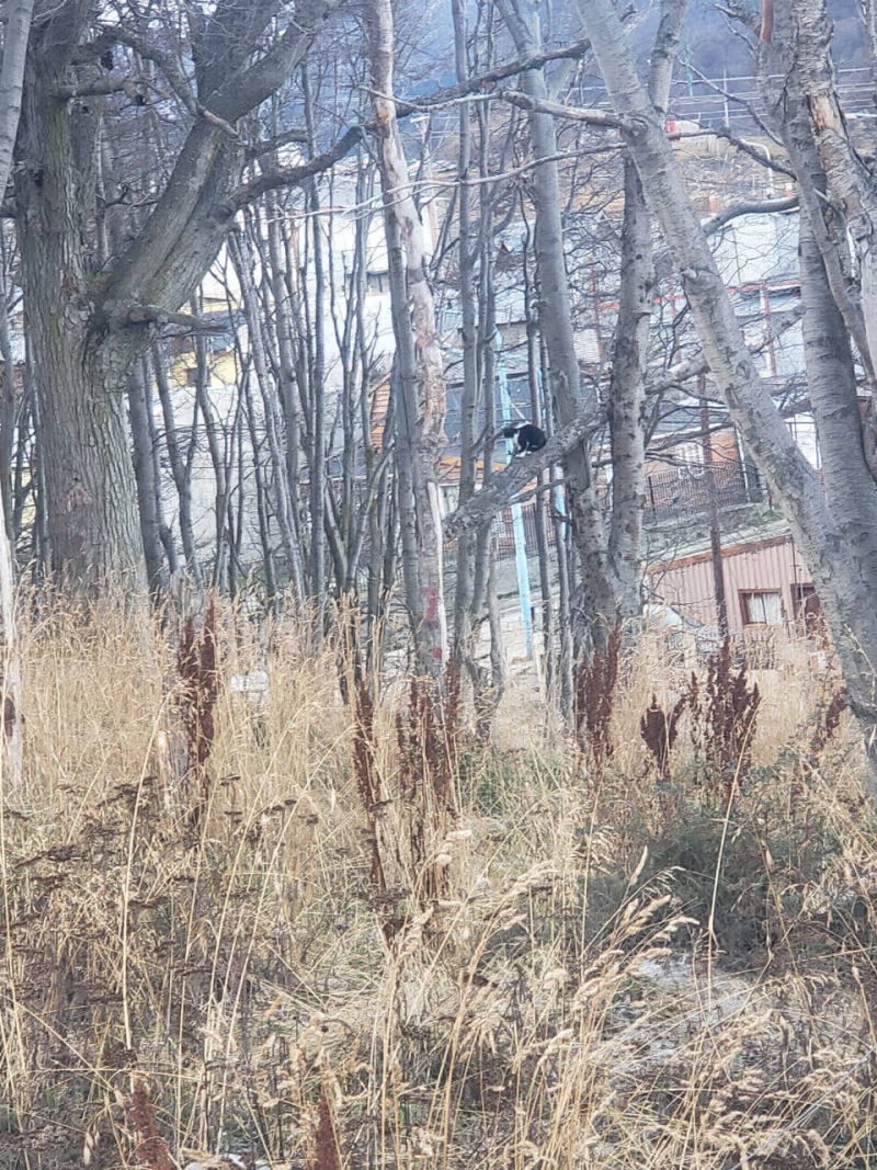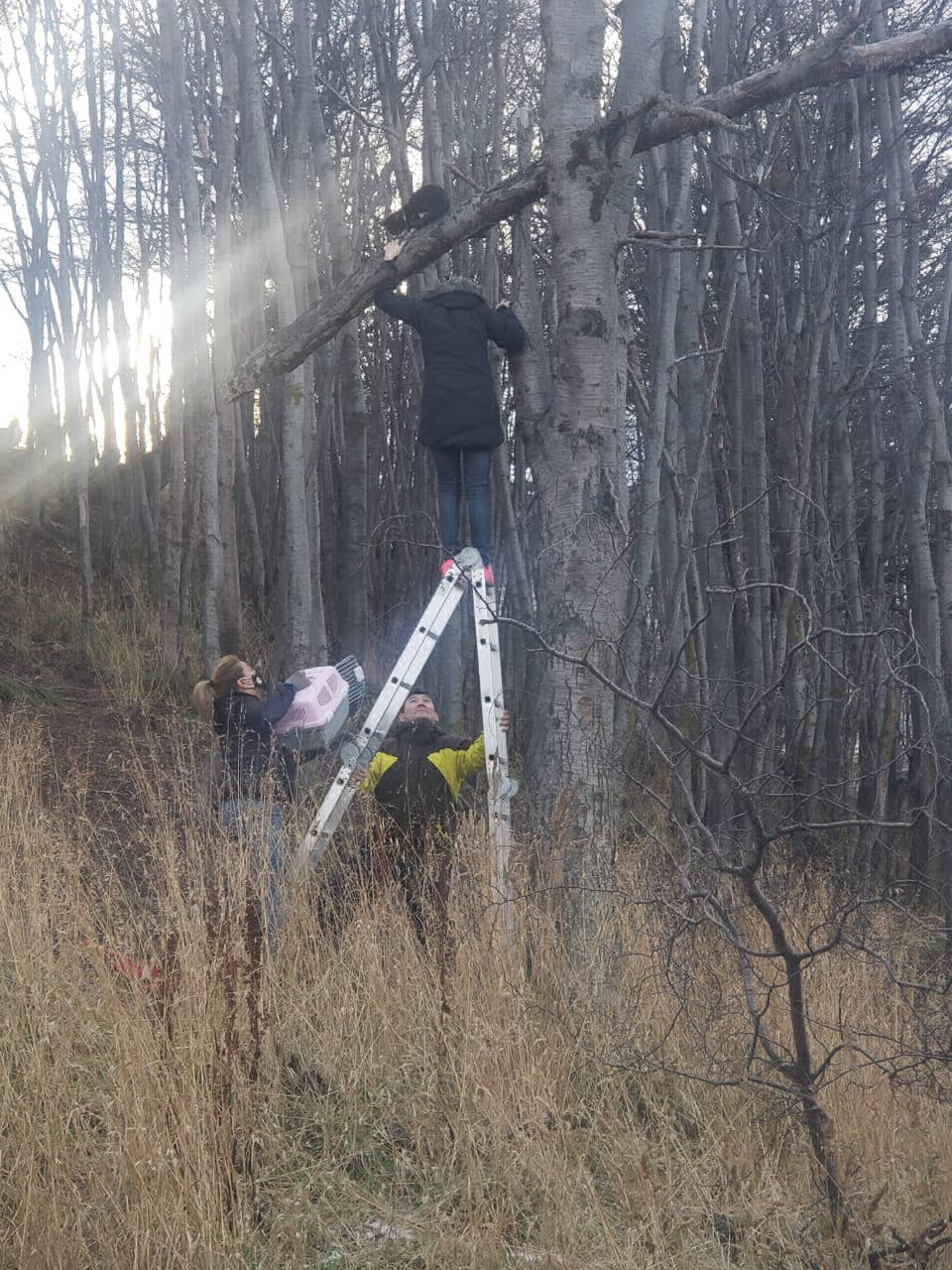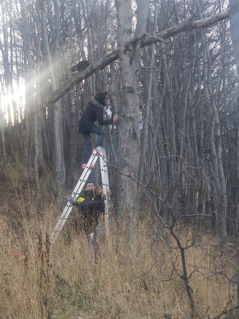 Nuestras integrantes, llegaron al lugar con un canil, una escalera y se acercó un vecino, Marcelo Schaller quien nos brindó ayuda para lograr bajar a Tom de esas alturas.